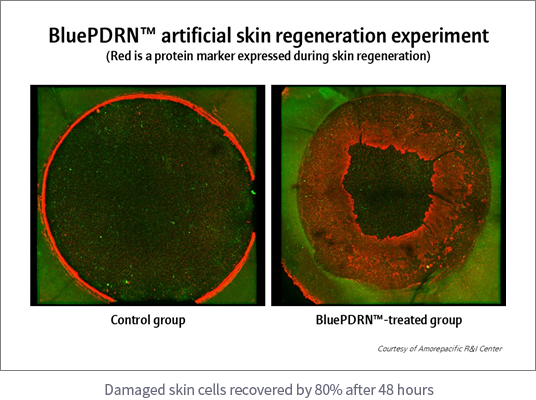 The project was conducted through public-private collaboration between Amorepacific R&I center and Morechem Co., Ltd, resulting in the development of a process to extract high-content, low-molecular-weight PDRN from Chlorella. The extracted material, named 'Blue PDRN'2), was found to promote skin cell proliferation and migration, and enhance collagen synthesis and angiogenesis, thereby contributing to skin regeneration and wound healing.