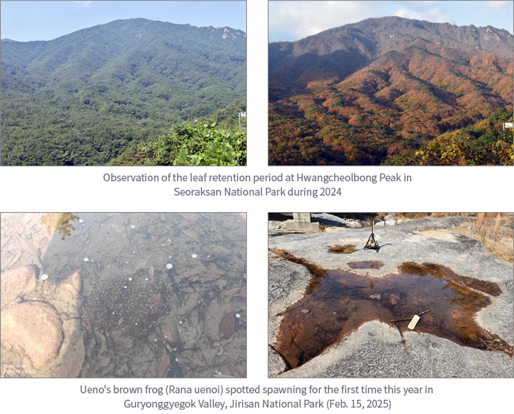 The Korea National Park Service of the Ministry of Climate, Energy and Environment has confirmed clear signs of climate change such as advancement of breeding period of birds and frogs by conducting long-term phenological monitoring1) in forests of national parks and uninhabited islands.